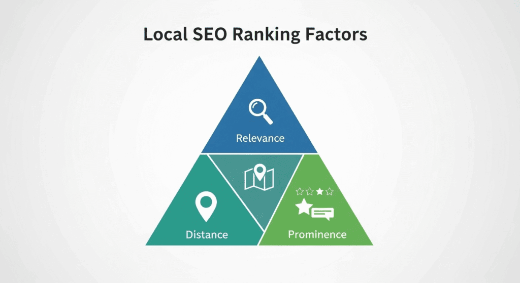 To fully fix visibility problems, you need to understand how Google decides which businesses appear in local search. The algorithm is based on three factors:
